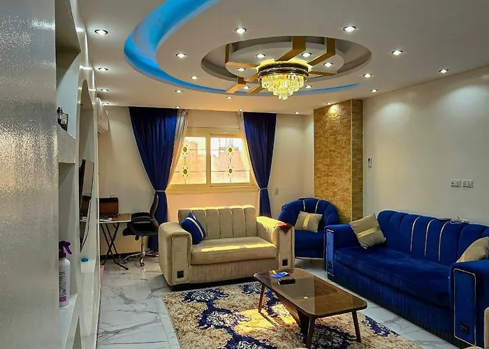 The spacious 3-bedroom 702 Close To Pyramids Cairo apartment is located 2.8 km from the Giza Khufu Ship and around 15 minutes' drive from the Pharaonic Village. The apartment provides guests with city views and a barber shop.